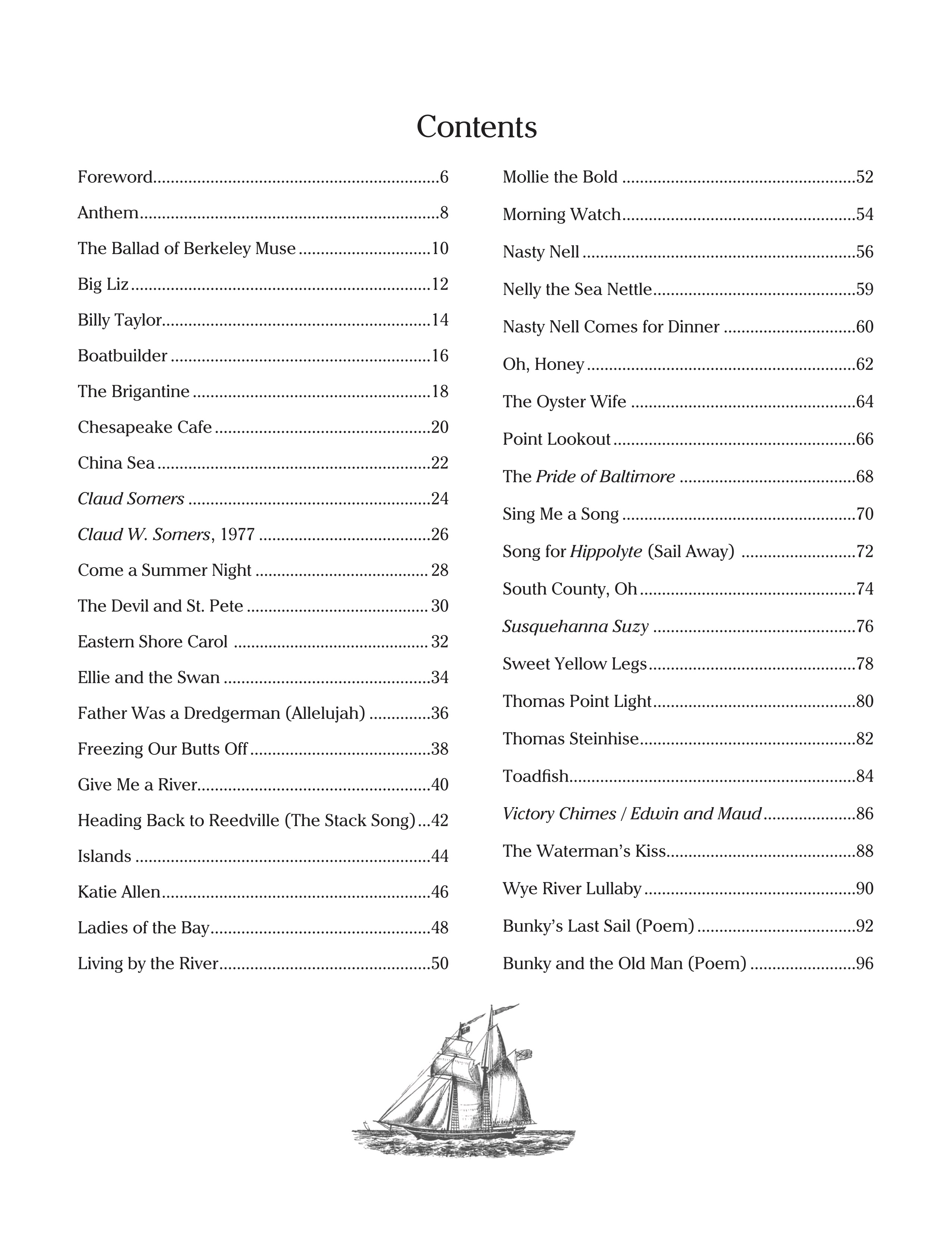 Finally! I've gathered my many Bay-related songs (40+) into a wire-bound compendium that includes some (very) short stories and poems. Songs range from Morning Watch (a Crab Alley Favorite) to Nasty Nell (Paul's Favorite) to Father was a Dredgerman (so new many of you haven't heard it yet!).